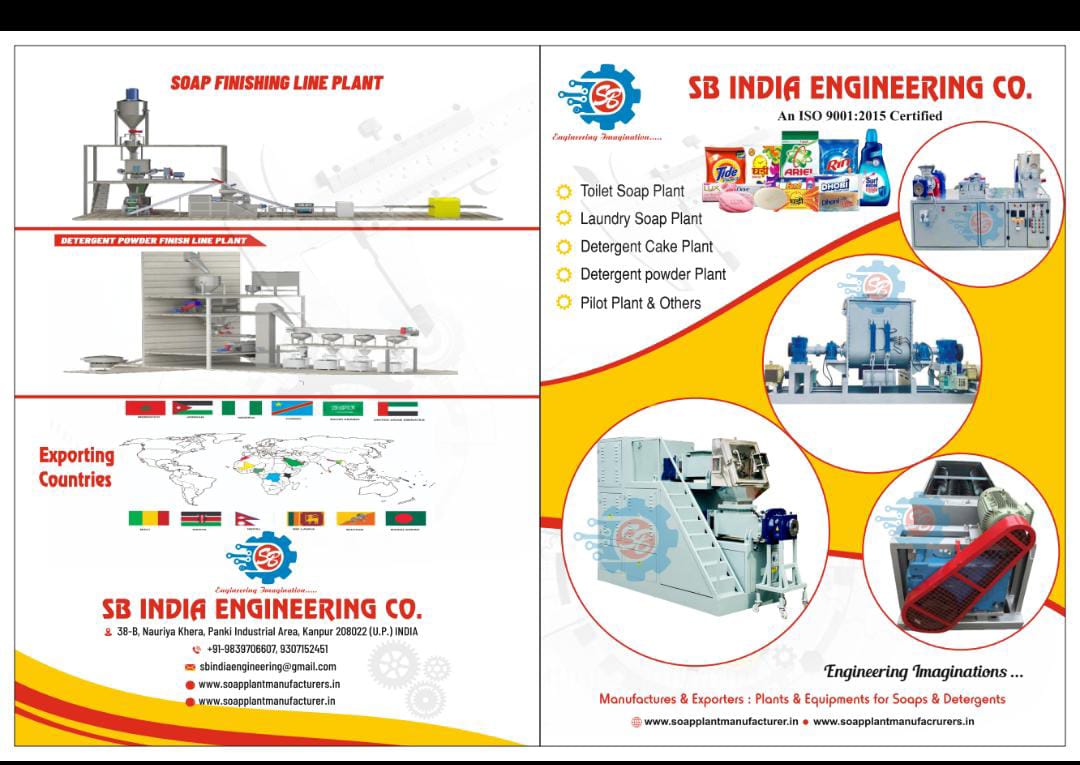 SB India Engineering Co. exports most of it’s Soap plant to South Africa, Mozambique, Uganda and Kenya. We are top exporters of Soap plant are India.